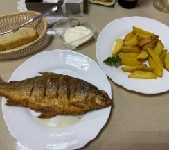 Особо хочется отметить в меню кафе озерную рыбку, которую в итоге и заказали. Готовят в конвектомате , специй минимум, чтоб насладиться вкусом, по времени минут 10. Получается вкусно. кости отделяются от мяса без проблем.