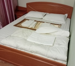 Заселили сразу.Белье и полотенца чистые.В номере чайник,фен,чай,кофе,одноразовые тапочки. Единственный минус это грязная душевая,пришлось мыться в сланцах