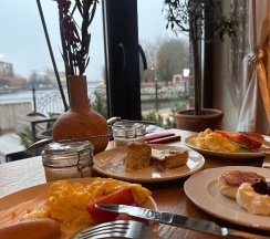 Очень уютный небольшой отель в живописном месте на набережной реки. Отличный просторный номер с видом на синагогу. Завтраки просто шикарные: творожные сырники и капустный штрудель очень хороши! Свежевыжатые соки и вкусный кофе дополняют хорошее впечатление от ресторана.