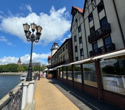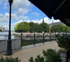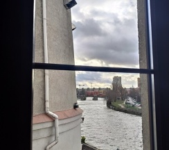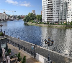 Уютная гостиница в центре старинного Кёнигсберга с шикарным видом на реку Преголя. В шаговой доступности могила Канта, Кафедральный собор, музей мирового океана, мосты, супермаркет, остановка трамвая и аптеки. Чистые номера, вкусные завтраки.