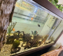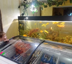 Но вот аквариум который там стоит требует чистки и смены воды, рыбок жалко((