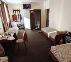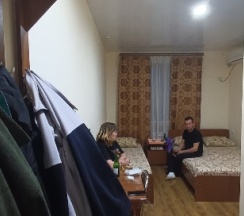 Заехали поздно вечером, заселились в 5 местный номер (2 взрослых и 3 детей). В номере есть душ, туалет. Напор воды очень хороший. Также полотенца. Переночевать само то. Есть кондиционер в номере! В общем холле стоят: микроволновка, чайник, чай, кофе, Сахар. И цена очень адекватная, на нашу семью вышло всего 3500! До этого снимали за 4500 и уровень намного ниже. Также при заселение выдали всем сок и печенье ) приятный знак внимания! Единственный минус- очень неудобные подушки…Как камень. А так все понравилось) Спасибо за гостеприимность)