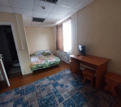 Очень приличная гостинка. Двухместный номер. Душ (вода реально горячая). Туалет. Полотенца. Тапочки нужны свои. В помещениях чисто.