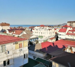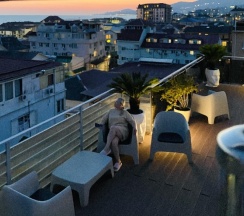 Отель замечательный)👍 Отель, рядом с морем, чистый, уютный. На крыше расположен бар с видом на море, подогреваемый бассейн, а также на крыше есть джакузи, вечерами проходят кинопоказы. Внизу тоже есть подогреваемый бассейн. Персонал вежливый, в номере всё необходимое: полотенца (банное, для лица и ног) белоснежные, пляжное полотенце голубое, халаты, фен, набор гигиенический (зубная паста, щётка, шампунь, гель для душа, мыло), тапочки, холодильник, чайник, кондиционер,в коридоре утюг и гладильная доска. Постельное бельё и полотенца поменяли через 4 дня, мусор выносили каждый день. Внизу находится столовая готовят очень вкусно, разнообразно, недорого. В шаговой доступности магазины с разными товарами, сувенирами, развлечения для детей: Океанариум, дельфинарий, динозавров парк, аквапарк, атракционы и др. Недалеко море.