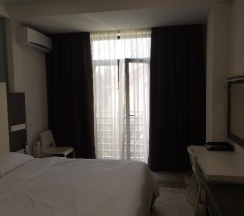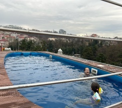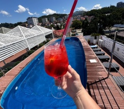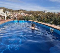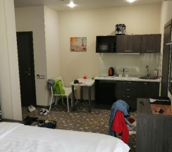 Отелем остались довольны!Персонал внимательный, подкупило, что перед приездом написали в вотсап с предложениями решения вопросов с временем заселения (при нестандартном времени заезда), трансфера и тп. Выехать разрешили позже стандартного времени, за что отдельная благодарность! Поддержка была на протяжении всего времени проживания. Также отдельный чат по развлечениям(ежедневные показы фильмов на крыше), с анонсами кино и ( что не мало важно) учётом пожеланий. На первом этаже отеля располагается столовая с хорошим выбором блюд. Всё были сыты и довольны. Для детей тоже есть хороший ассортимент блюд, что есть не везде, как выяснилось. В момент нашего приезда погода оставляла желать лучшего и теплый бассейн оказался "гвоздем программы"! Бассейн чистый и безопасный (с точки зрения ротавируса) для детей! Хорошее расположение: рядом море, океанариум, парк, жд станция Известия(очень удобно и быстро можно добраться до Роза Хутор и т.п.)