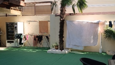 Наш номер был без балкона, но много мест для сушки белья - на общем балконе и в закрытом дворе. Пляж в 5 метрах от ворот гостиницы, очень удобно.