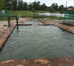 Небольшой термальный источник в котором места хватает всем и в нем комфортная температура. Рядом переливной хороводный источник хотя разница между ними не большая в температуре, глубина самая большая взрослому по грудь с мягким песочком. Есть душевая где можно ополоснуться. Есть домики и рыбалка но мы их не брали )