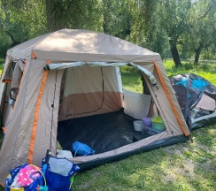 2.Палаточный городок все супер, все чисто , но очень бесила как попало скошенная трава (высокие тычки и скошеная трава доставляли дискомфорт). Туалеты :на удивление в туалетах чисто что не мало важно. НО преобретите таблетки хлорки чтоб небыло такого " с ног сшибательного запаха".