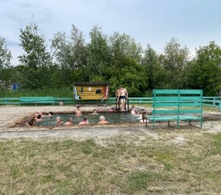 5. Минеральный источник. Вот он очень огорчил... Совсем уж маленький, от силы 3×3 да и по глубине с моим ростом 154см воды по бедро. Думаю хозяину стоит задуматься о расширений, либо сделать ещё один бассейн так как основная часть посетителей приезжали с детьми, которым хотелось побулькаться но каждый раз они доставляли дискомфорт другим посетителям которые в свою очередь делали им замечания. Естественно ни детям ни взрослым не удавалось нормально посидеть в бассейне. Так же очень огорчила чистота бассейна, стенки и пол в бассейне все в иле😬. Утром при нас девушки его вроде и почистили, но из-за рельефной поверхности ил так и остался на месте, а то что смыли со стен благополучно осело на дно. 😬И только дети поднимали всю эту грязь со дна..