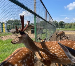 Приехали на 2х машинах 4 взрослых и два ребенка 5 и 10 лет заплатили на въезде 2000 на двое суток. Присмотрели местечко и расположили свои две палатки рядом с авто. Мангальчик небольшой есть на месте и рядом бельевая веревка. Очень вивописное место, чистое это очень важно, дети себя чувствовали комфортно, посетили животных а это: олени, козлята, лань, верблюды, буйволы, лошади, но нам больше всего понравились олени их можно кормить и они более ручные и очень красиво плачут.