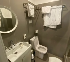 Отличный отель для командиповки, очень чистый, тихий, уютный. Удачное месторасположение, рядом магазины, аптека, пекарни, станция метро. В номере все, что нужно: тв, сплит-система, халат, тапочки, стол, шкаф. Белье и полотенца чистые, душ и унитаз чистые. Из минусов: тек шланг в душевой, в ванной не было пасты и зубной щётки, хотя оказывается можно было попросить бесплатно, также нет стаканчика под щётку и пасту. На этаже есть куллер с водой, зона попить чай/кофе, кофемашина. Вай-фай отлично работал. Спасибо за радушный приём, в следующий раз обязательно остановлюсь снова у вас. Отдельно хочется отметить очень вкусные завтраки, которые приносили утром в номер. Предварительно с вечера необходимо выбрать из небольшого меню 2 блюда и сообщить время, когда принести завтрак. Очень понравились сырники с вареньем и каши.