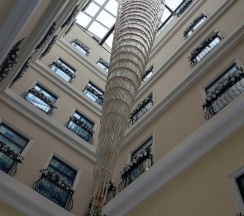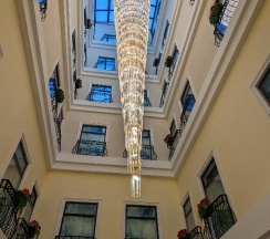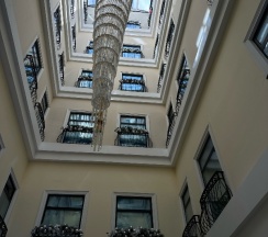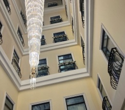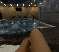 Отель с большой люстрой на несколько этажей. В номере тепло, чисто, кофемашина( капсулы кофе) , чай, большие зеркала. На первом этаже ресторан, вкусно, более менее атмосферно. Говорили, что вечером там даже караоке, разные веселья. Спа центр:бассейн, хамам, сауна, шезлонги, несколько массажных фонтанов, джакузи.Все достойно своей цены