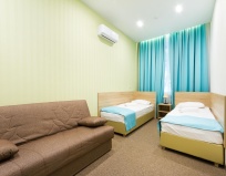 Заселили быстро. Комната не большая, но все нужное имеется ( гель для душа, шампунь, потоленца даже для ног) меняется каждый день. За что отдельное спасибо. Так же есть; кровать, стол, стул, телевизор, холодильник, прикроватные тумбочки,чайный набор, чайник, стаканы, тапочки. В комнате тепло, на лето есть кондиционер. Соседние комнаты были заселены, но соседей слышно не было - звукоизоляция хорошая)
