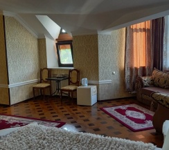 Жили в обычном двухместном номере на третьем этаже. Всё вежливо рассказали и показали. Номер просторный и светлый. Да, немного "уставший", но произвёл приятное впечатление. Внутри чисто, горничная убирает каждый день, и не ограничивается выносом мусора. За десять дней постель меняли два раза, полотенца один раз. Шумы с улицы не доставали, соседние номера слышно, но не критично. Завтраки оплачивали по факту. Вкусные и понятные, без изысков, но сытно,хорошо и недорого. А кому 200 рублей дорого, не стоит ждать,что вас кто-то будет кормить задаром. Попадали и на вкусную выпечку, печенье. Лифта нет, есть лестница, по которой не очень удобно тащить чемоданы и боялись навернуться, но за всё время не навернулись. Ещё нюанс - тухлый запах из слива душа и плохо уходящая вода в раковине, но потом проблему решили. В номере были муравьи, поэтому еду держите закрытой! Но мне кажется, в Кисловодске этих муравьёв просто тьма. Приятной неожиданностью стала стиральная машинка со стиральным порошком и кондиционером в свободном доступе, а также микроволновка, но мы ею не пользовались. Сотрудничают с фирмой Ариана, на ресепшене можно записаться на экскурсию. Заходить удобнее через ворота санатория Семашко, поднявшись по небольшой лестнице (не ходите до упора, придётся дольше подниматься и дольше обходить). Семашко скоро закрывается на ремонт, поэтому прикроют эту лавочку или нет, не знаю.