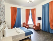 Останавливались на одну ночь семьей из 4 человек. Номер был одна двуспальная кровать и еще одна односпальная кровать. Малышка спала с нами. Высокие потолки, большая комната, идеальные матрасы. Все чисто уютно. Администраторы взрослые женщины очень приятные. В 23.00 нас заселили. Есть завтраки за доп плату. Комната угловая была с видом на старинную Самару. Все очень понравилось. Если будем в Самаре то еще раз переночуем там