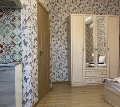 Очень долго выбирала хороший отель по отзывам и решила остановиться здесь. Понравилось абсолютно всё :по телефону проконсультировала очень приятная женщина, учла все пожелания. Забронировала (без никакой предоплаты, что в наше время вообще чудо) два номера один с кухней, второй для друзей стандартный. Оба номера не уступают друг другу по удобству и чистоте. Ремонт свежий, современный, хорошие двери, кровать удобная, шторы плотные, никаких неприятных запахов либо пятен нет. На втором этаже большая общая чистая кухня со всей необходимой техникой и посудой. На столе есть чай, конфеты, фрукты и прочие приятные мелочи. Во дворе есть парковка, мы были на машине для нас это было важно. В общем это отличное место для отдыха🔥🔥🔥