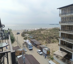 2. Хорошее расположение для желающих искупаться. Море через 50м, на последних этажах открывается крутой вид на это море. Воздух морской.