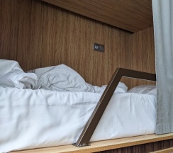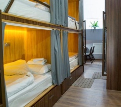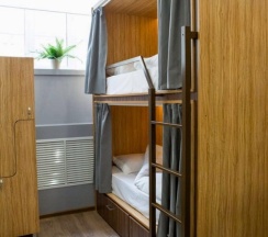 Пожалуй пока лучший хостел в котором я был. Достаточно чисто, тихо. Красивый интерьер, приятно находится. Кровати большие, удобные, у каждой есть розетка и свой свет. Подсветка расположена таким образом, что не бьёт в глаза (за панельной) Порадовало наличие куллера с холодной и горячей водой, микроволновка, большие холодильники. В общей комнате столики и диванчики, мест много, никто никому не мешает.