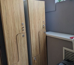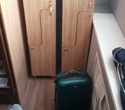 Минусы: у некоторых шкафчиков замки держатся на соплях, заедают, кроме того очень маленькие, а помимо них есть только небольшой шкафчик под кроватью (без замка)