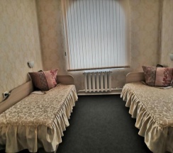 В номере: две односпальные кровати, телевизор. Удобства общие, на этаже.
