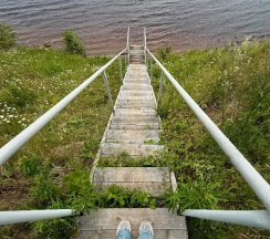 Есть прямая лестница к реке, вполне можно искупаться при желании.