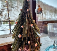 Прекрасное тихое место на берегу реки Узнезя с собственным водопадом на территории. Шикарная территория с детской игровой зоной, мостики, качели на территории. Дома для проживания отличные: теплые полы, кухонный гарнитур, холодильник, кофемашина, вся необходимая посуда, даже лед в морозилке был. Увидев, что будет проживать маленький ребенок, персонал позаботился про подставку для ножек малыша и накладку для унитаза (я, кстати, как раз забыла горшок для ребенка). Имеются одноразовые наборы для умывания, халаты. Белье белоснежное, не застиранное премиум качества, кровать очень большая, с комфортом можно разместиться 2 взрослым и ребенку. Из домов открывается великолепный вид на горы и реку. У каждого дома своя просторная терраса. В нашем доме был камин, но мы его не растапливали, т.к. в доме было очень тепло несмотря на то, что за окном было -20. Идеальная чистота как в домах, так и на территории. В каждом штрихе видно, что все сделано с большой любовью к гостям отеля и заботой. Персонал очень вежливый и гостеприимный. Вернемся сюда еще точно и не раз. Спасибо Юлии и Василию за их трепетное отношение в гостям.