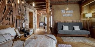 Так, ну поехали. Всё очень не однозначно. Дорога в эту гостиницу очень, не очень, но и ладно, ведь у нас есть цель, и мы готовы что будет плохая дорога, которая покажет твоей машине где раки зимуют. Приехали, на ресепшене очень вежливые сотрудники, разместились, и о чудо, бесплатной воды в номере нет, весь холодильник утыкан пивом и вином, ценник конечно конский, написано что чай комплимент от заведения, а чая нет, рядом с чайником стоят орехи и мед, тоже платное. Заходишь в уборную, а там на ванне корзинка с ванными принадлежностями, типа соль для ванны, какой то набор в общем, так и он тоже платный, да и кто в здравом уме будет лежать в этой ванне, чего там только не делали в ней. Чайник есть в номере, и на том и спасибо . Магазинов рядом нет, да да, покупайте все заранее и везите с собой. Про номера, кто был у бабушки в деревне, поймет, номер из дерева, типа ЭКО номер, но слышимость сумасшедшая, топот сверху, кто-то из верхних номеров спускает воду в туалете, такое ощущение что водопад у тебя в номере. Кто-то из других номеров выходит в коридор, такое ощущение что зашли к тебе в номер, слышимость. Были в январе, так жара в номере ужасная и очень сухо в номере, открывали все окна и двери, а дышать просто нечем, на улице было 4 градуса. Рассвет тут ранний, ну и хотелось бы поспать, ведь мы приехали отдыхать, но увы, шторы как марля, солнце светит прямо в глаза, надо бы сделать блек аут шторы что-ли, ну и утром начались движения на улице, разговоры и тд и пришлось закрыть все окна.