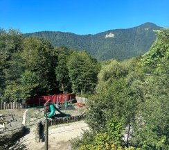 Так, ну поехали. Всё очень не однозначно. Дорога в эту гостиницу очень, не очень, но и ладно, ведь у нас есть цель, и мы готовы что будет плохая дорога, которая покажет твоей машине где раки зимуют. Приехали, на ресепшене очень вежливые сотрудники, разместились, и о чудо, бесплатной воды в номере нет, весь холодильник утыкан пивом и вином, ценник конечно конский, написано что чай комплимент от заведения, а чая нет, рядом с чайником стоят орехи и мед, тоже платное. Заходишь в уборную, а там на ванне корзинка с ванными принадлежностями, типа соль для ванны, какой то набор в общем, так и он тоже платный, да и кто в здравом уме будет лежать в этой ванне, чего там только не делали в ней. Чайник есть в номере, и на том и спасибо . Магазинов рядом нет, да да, покупайте все заранее и везите с собой. Про номера, кто был у бабушки в деревне, поймет, номер из дерева, типа ЭКО номер, но слышимость сумасшедшая, топот сверху, кто-то из верхних номеров спускает воду в туалете, такое ощущение что водопад у тебя в номере. Кто-то из других номеров выходит в коридор, такое ощущение что зашли к тебе в номер, слышимость. Были в январе, так жара в номере ужасная и очень сухо в номере, открывали все окна и двери, а дышать просто нечем, на улице было 4 градуса. Рассвет тут ранний, ну и хотелось бы поспать, ведь мы приехали отдыхать, но увы, шторы как марля, солнце светит прямо в глаза, надо бы сделать блек аут шторы что-ли, ну и утром начались движения на улице, разговоры и тд и пришлось закрыть все окна.