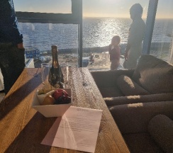 Гостиница подарила бутылочку игристого в честь дня рождения и фрукты.