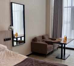 Хороший номер, обслуживание на 5, спасибо за внимание оказанное при заселению, единственное, что бросилось в глаза так это мебель, сняла бы за неё половинку звезды)