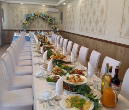 Отличная кухня, поворам 10 звезд из 5, обслужавающий персонал, бегал вокруг столов как пчеки, все блюда подавались вовремя. 4 звезды из-за торта, когда вывозили не приподняли через ступеньку и он немного повредился