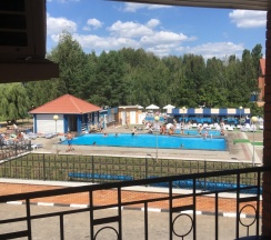 Начнём с того, место хорошее, ценник приемлемый, бассейны классные, администраторы девушки молодцы, отдыхающие люди в беседках на территории тоже все компанейские. Детская площадка хорошая.Засели с ребёнком в стандарт, дополнительно бесплатно кровать принесли. Полотенца чистые. Есть холодильник возле ресепшене, если что-то поставить. Завтрак с утра хороший, подкрепиться можно, и взрослым и детям, недостаток растворимый кофе, но как бы не критично. То есть прям 4-ка твёрдая. Минус который есть сейчас это ресторан. При чем многие постояльцы выражали недовольство, вечером девушка на ресепшене что то высказывала про ресторан, ещё одна про кислое пюре. И вот я, заказали борщ в меню он с говядиной и подаётся с салом и горчицей. Принесли борщ и горчицу, сало не было, на что ответили нет сейчас сала! Прям страшно представить, не уж-то «хохлы» все поели , борщ был без говядины, просто борщ без мяса, и многих позиций в меню нет. Заезжая на базу запасайтесь своей едой, иначе разочаруетесь .