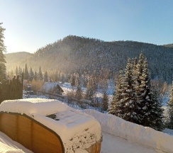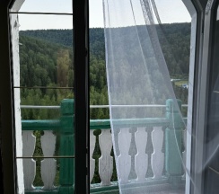 Отель расположен очень удобно — близко к центру Таштагола, но при этом в тихом и живописном месте. Из окон наших номеров открывался потрясающий вид на заснеженные горы и лес.