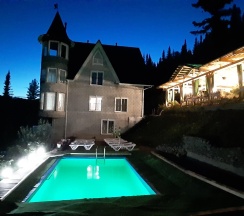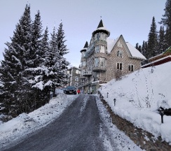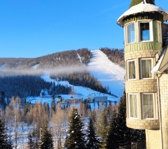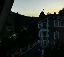 Останавливались переночевать в командировке. Снаружи смотрится шикарно. Но номер был подуставшим,хотя вполне приличным. И интерьер номера немного не соответствует экстерьеру замка. Ну зачем балки потолка сделали белым, это же замок, а не жилище английского буржуа (то же касается мотива красной клетки в санузле) Персонал приветлив и клиентоорентирован. Завтрак вкусный. Вид потрясающий. Зимой приеду кататься наверное