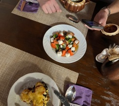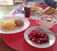 Питание в гостевом доме заслуживает отдельного упоминания. Завтрак на выбор – каша, омлет или яичница, плюс обязательный бутерброд и печенье или манник к чаю – это только начало. На обед и ужин вас ждут разнообразные блюда, такие как салаты, супы, вторые блюда и компоты. Все было не только вкусно, но и красиво подано, что добавляло еще больше удовольствия от трапезы.