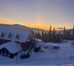 Нормальная бюджетная гостиница, все понравилось. Вид из окон номера в блоке на 2м этаже великолепный на гору и еловый лесок. Большая охраняемая паркова, есть лыжехранилище и большая сушилка для снаряжения, отличная сауна с бассейном. Ну а завтраки и ужины , включенные в проживание, так довольно экономные, не объешься))