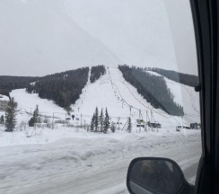 Еще момент, дорога около сауны не расчищена и нашим машинам пришлось пробивать дорогу, чтобы припарковать их.
