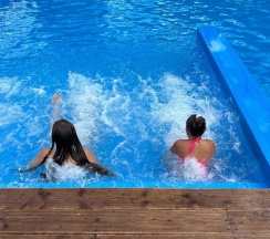 Были сегодня в бассейне на улице. Очень понравилось! Комфортная температура воды, веселые горки, достаточной удобных шезлонгов, чисто, аккуратно, вкусная еда, приятный персонал.