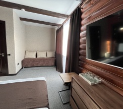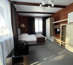 Останавливались пару недель назад в гостинице. Впечатления положительные, уютно, мебель удобная, красивая отделка деревом в номерах, в кафе подают вкусное меню. Отдохнули с комфортом.