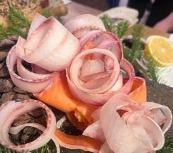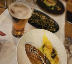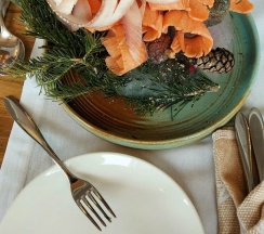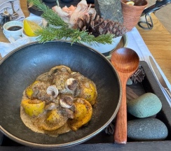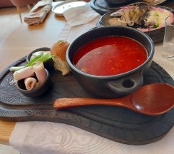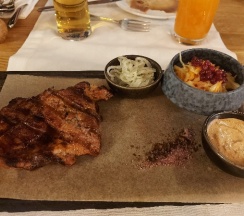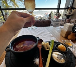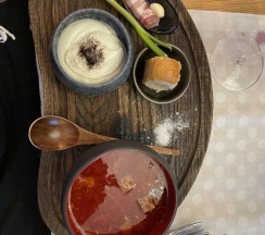 Брали строганину из рыбы, пельмени из оленины, борщ и бургер, на двоих оказалось слишком много, но всё съели. Ничего нигде не болит и не колит после еды. Из напитков рекомендую попробовать «Сибирский сауэр».