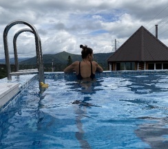 Замечательный отель, чисто, уютно, в подвале находиться сушка , что позволяет быстро высушить одежду, Отель находиться рядом с подъемником, что очень удобно, нас встретила доброжелательный администратор Полина, она нам показала, всё , что находиться в отели и проконсультировала где находятся другие подъемники , какие самые крутые горы, нам это необходимо было узнать ТК мы были первый раз. Вечером банька, это хорошо расслабляет. Минус есть конечно и очень большой. В отели есть кафе, но это не о чем. Утром завтрака нет. Да и готовят не вкусно.
