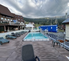 Хороший отель. Расположен на горе, удобно. Вежливый персонал, уютные номера, вкусные разнообразные завтраки. В отеле имеются кабинки-сушилки для одежды и снаряжения.