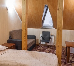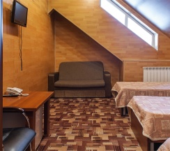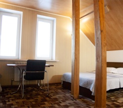 Данный номер является экономичным решением, как для нескольких Гостей, так и для большой компании. Номер расположен в мансардной части отеля (5 этаж).
