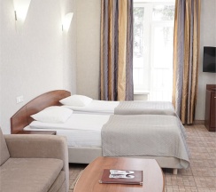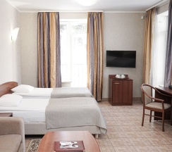 Более просторные номера в сравнении с номерами стандартной категории. Номера данной категории призваны обеспечить качественный комфортный отдых любому путешественнику. Номер состоит из спальни, прихожей, ванной комнаты и балкона с красивым видом. В номере: две раздельные кровати и возможность дополнительного места.
