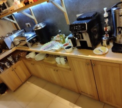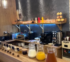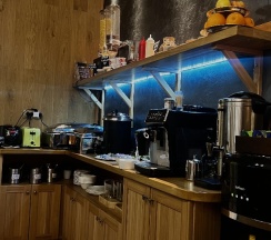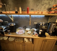Уютно. Много кофе. Когда заехали в отель кофемашина стояла не подключена. Сломана. Вечером уже была другая, оперативно. Неплохие завтраки.