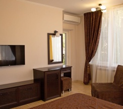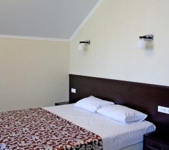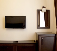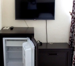 В номере: отдельный санузел с душем и раковной, мини-холодильник, телевизор, кондиционер, шкаф-купе, прикроватные тумбочки.