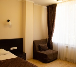 Просторный и светлый двухместный номер с большой двуспальной кроватью и раскладным креслом. В номере комфортно разместиться вдвоем. Кресло-кровать может быть использовано в качестве дополнительного спального места для ребенка до 17 лет (по тарифу с 3-местным размещением).
