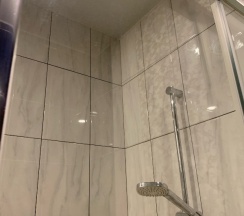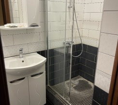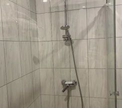 В санузеле тёплый пол. Душевая небольшая для женщины размера 46 хорошо, если вы прямо большой человек возможно будет не комфортно. По 3 полотенца на человека, зубная щётка с пастой, шампунь, гель для душа, мыло. Тапочки одноразовые. В прямом контакте все чистенько, но вытяжка, я о ней читала в отзывах, до сих пор ужасно грязная.