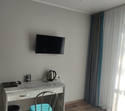 Приятный и удобный номер со всем необходимым. Вкусная еда в кофейне при отеле.