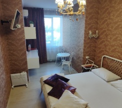 Не далеко от Крокуса. Очень уютный номер, чувствуешь себя как дома. Чисто, в коридоре кулер с горячей и холодной водой, микроволновка, чашки и столовые приборы, зелёный чай( не много) и сахар. Убирали и выносили мусор каждый день. Белье и полотенца белоснежные. Отличный матрац. Плотные шторы можно спать хоть до обеда. Из минусов очень сильная слышимость, отсутствие разовых шампуней и ковриков около кроватей. А так огромное спасибо, вернемся ещё.